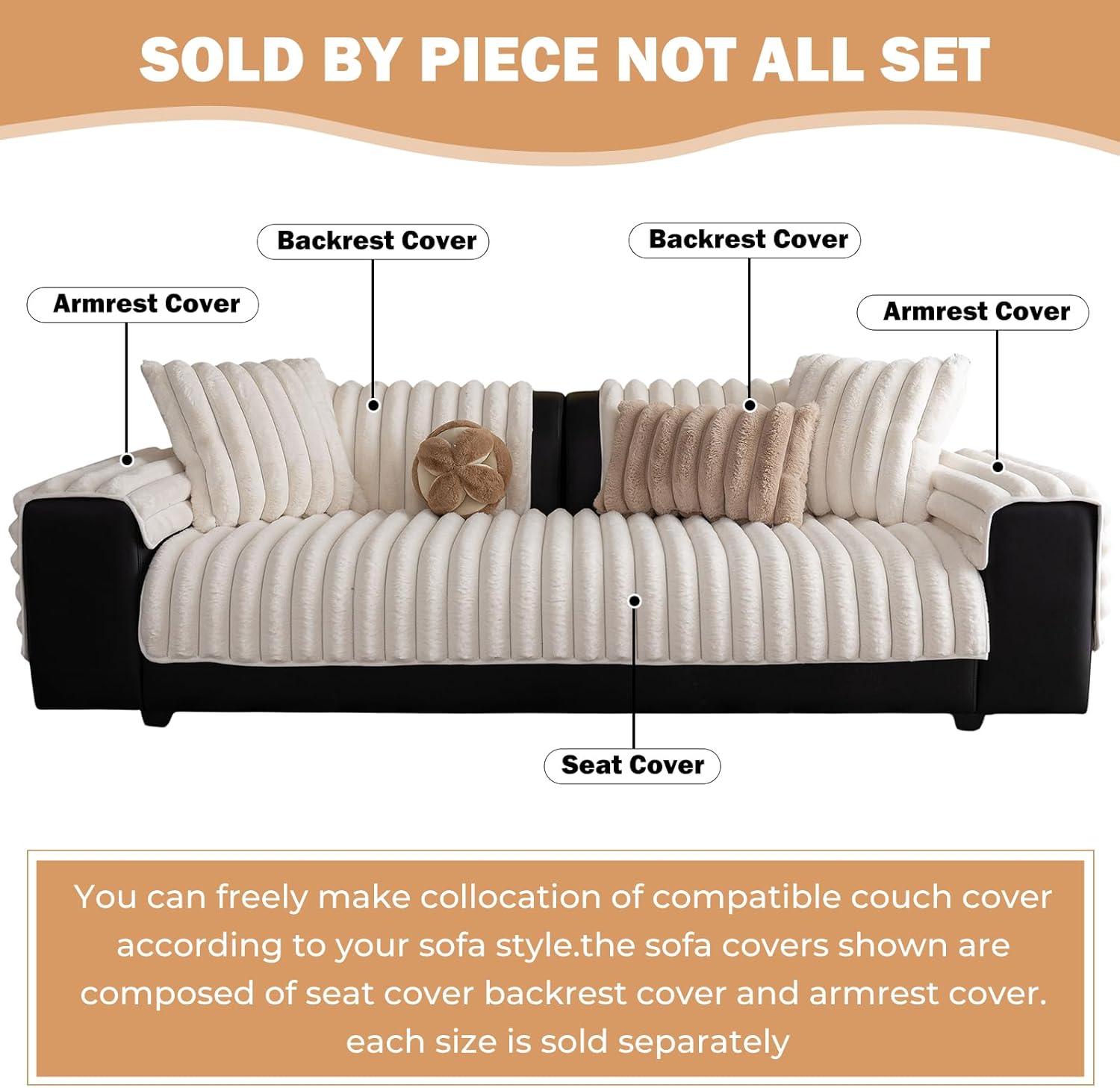 8 reviews for Faux Rabbit Fur Couch Sofa Cover Washable, Shaggy Fuzzy Sectional Couch Cover, Stripe Non-Slip Soft Plush Sofa Slipcover Furniture Protector for Dogs, Pets (Ivory,28″x28″)