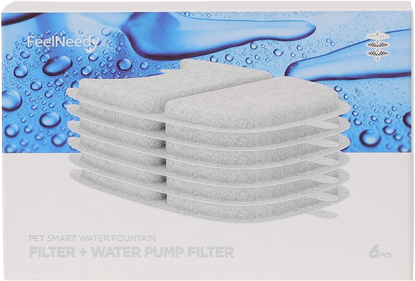 I’ve ordered the FEELNEEDY 6 Pack Cat Water Fountain Filters twice now. The filters work great and are very easy to install. I tend to change the Filter every time I clean the Fountain, and it’s amazing how much dirt/debris the filters are able to catch. I feel so much better that my Kitty’s water is clean.