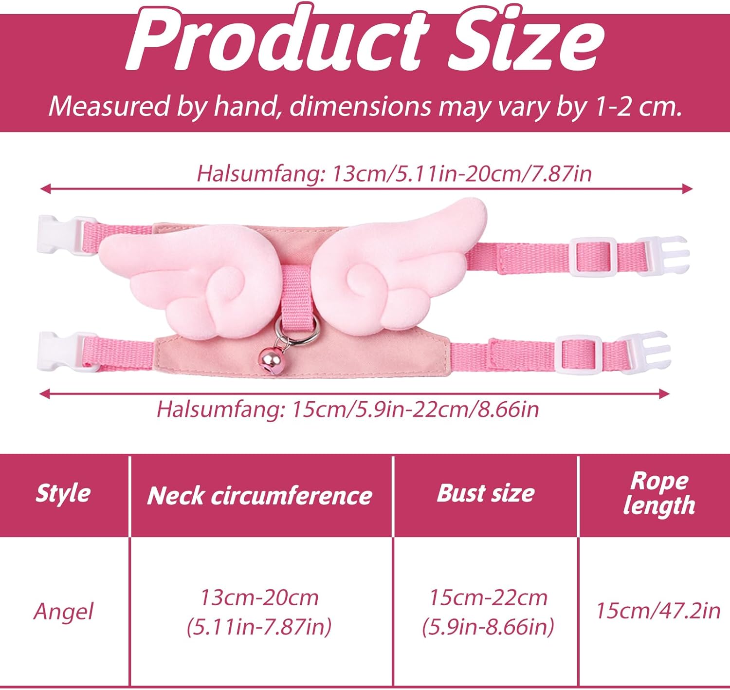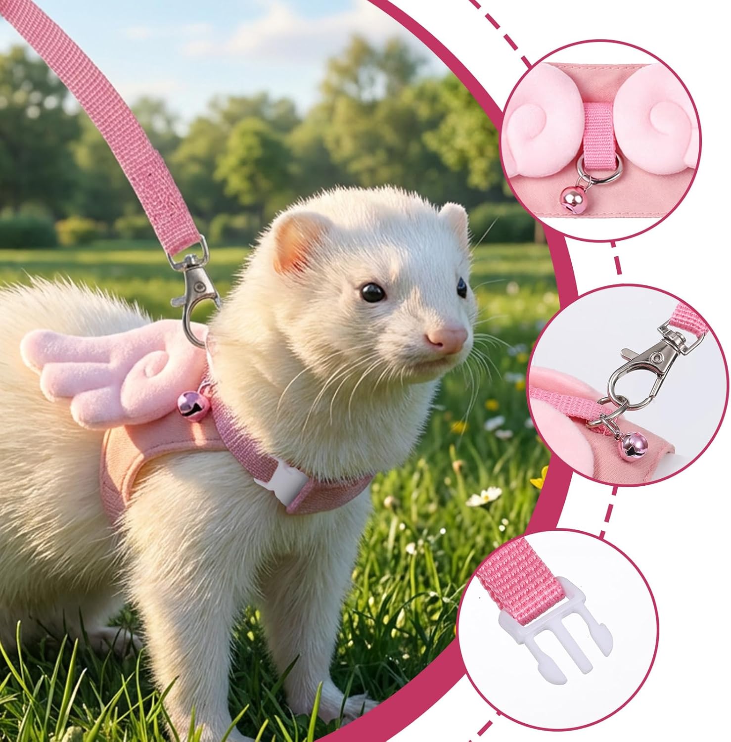 【Cute Design】Our guinea pig harness is an adorable style with pink angel wings that makes pets appear more lively and eye-catching when worn. Our ferret toys features fresh colors and outstanding appearance suitable for pet daily dressing and photography scenarios.