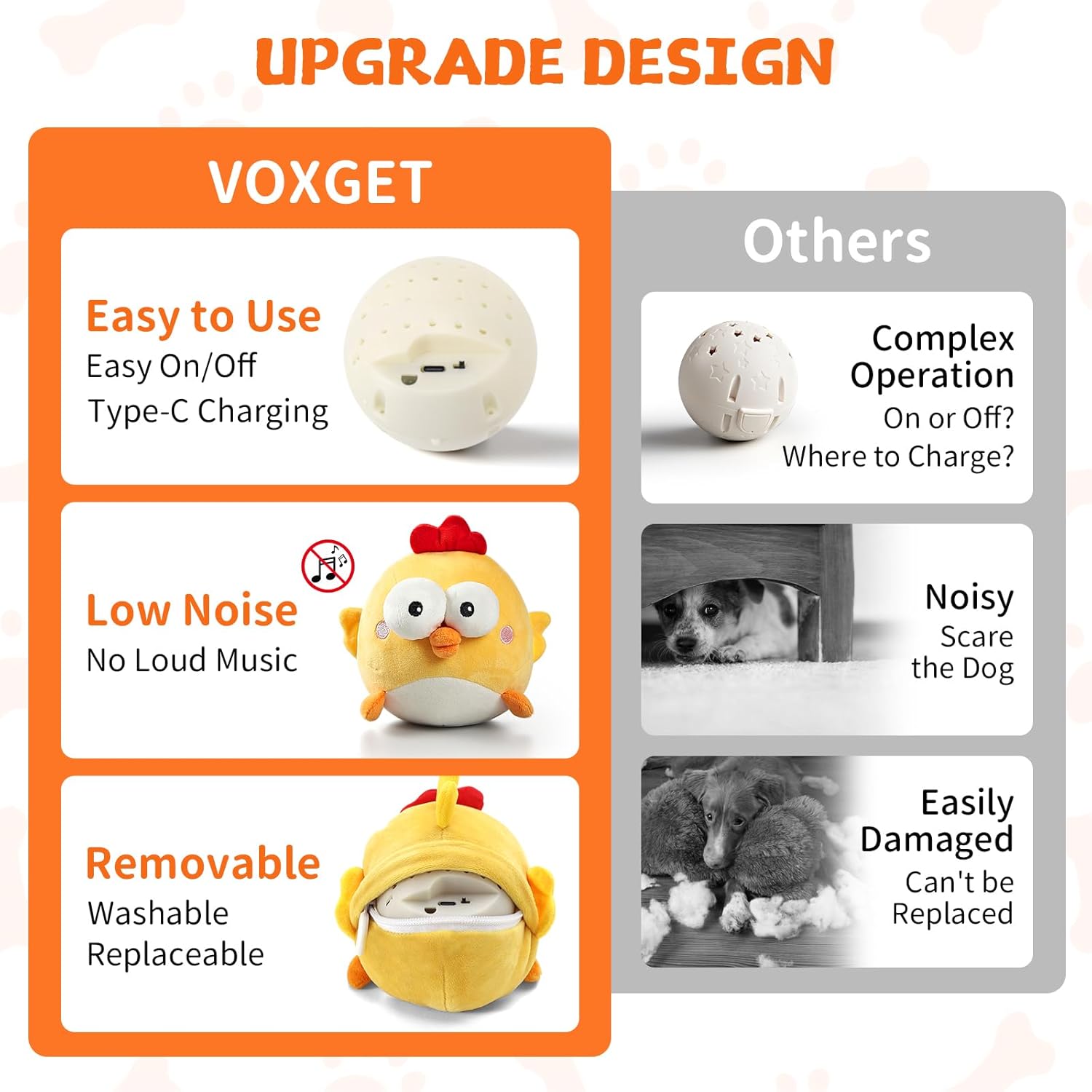 2 reviews for Interactive Dog Toy Ball, Rechargeable Jumping Plush Toy with Motion Activation for Small Large Dogs, Squeaky Moving Bouncing Ball for Pets Keep Busy Reduce Boredom, No Loud Music (Chicken)