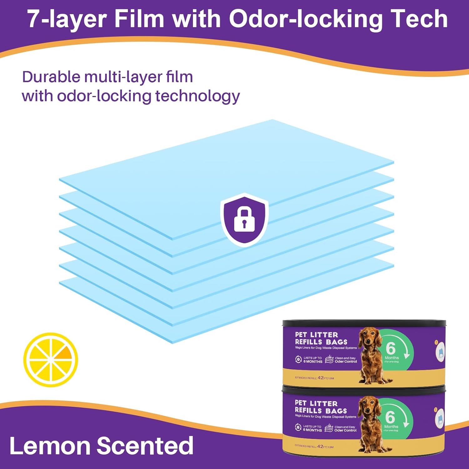 Advanced 7-Layer Odor-Lock Barrier:Featuring 7-layer odor lock technology, these dog waste refill bags create a powerful barrier against unpleasant smells. The reinforced, tear-resistant material ensures leak-free use—keeping your home fresher for longer
