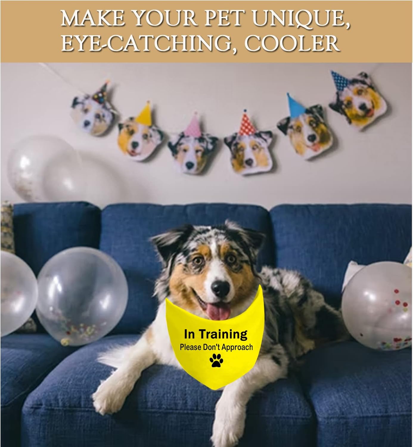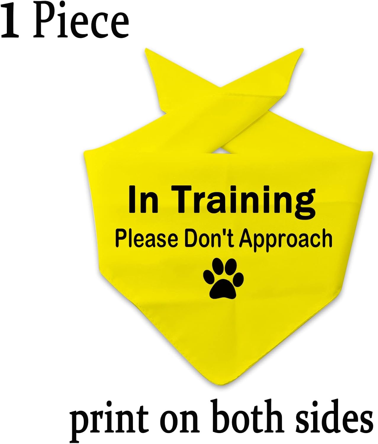 Pack of 1 yellow bandana, It reads: In Training Please Don’t Approach.Do you have an anxious/nervous training pup that doesn’t want to be touched? Or maybe you’re trying to train your dog in public and don’t want distractions? Our bandana is perfect for your pup!