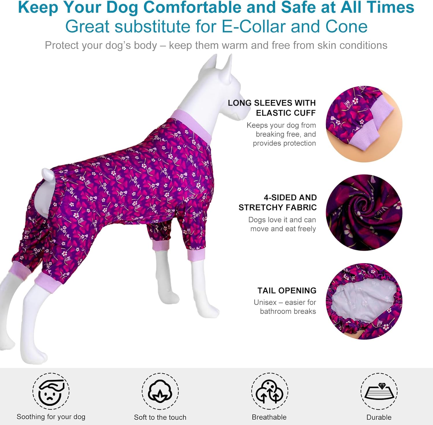LOVINPET big dog onesie can protect the dog’ s privacy. for example, If the wound is obvious after surgery, or when the skin is sensitive, wearing cute dog pjs can avoid embarrassment and let our dog regain self-confidence faster. your doggy will love this pjs.