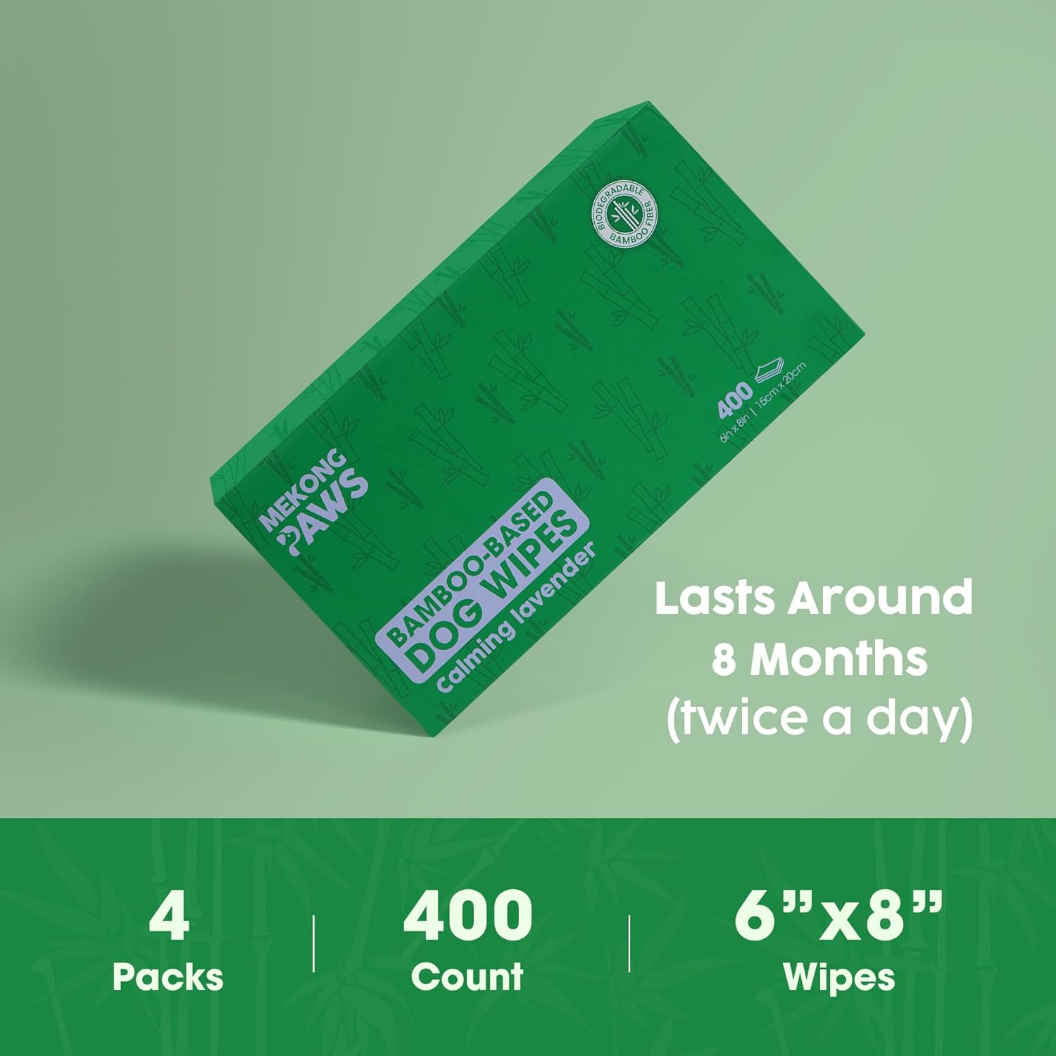MEKONG PAWS Bamboo Grooming Wipes – Calming Lavender Scented – Freshening Dog Cat – Gentle on Sensitive Skin – Thick & Durable for Paw Coat & Bum Cleansing – 400 Count