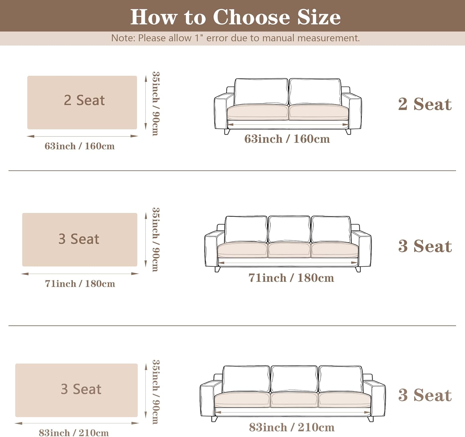 Before purchasing, measure the dimensions of your sofa seat. Additionally, if the gaps between your sofa’s armrests are large enough to accommodate part of the cover, opt for a longer one. It will enhance the anti-slip effect significantly!