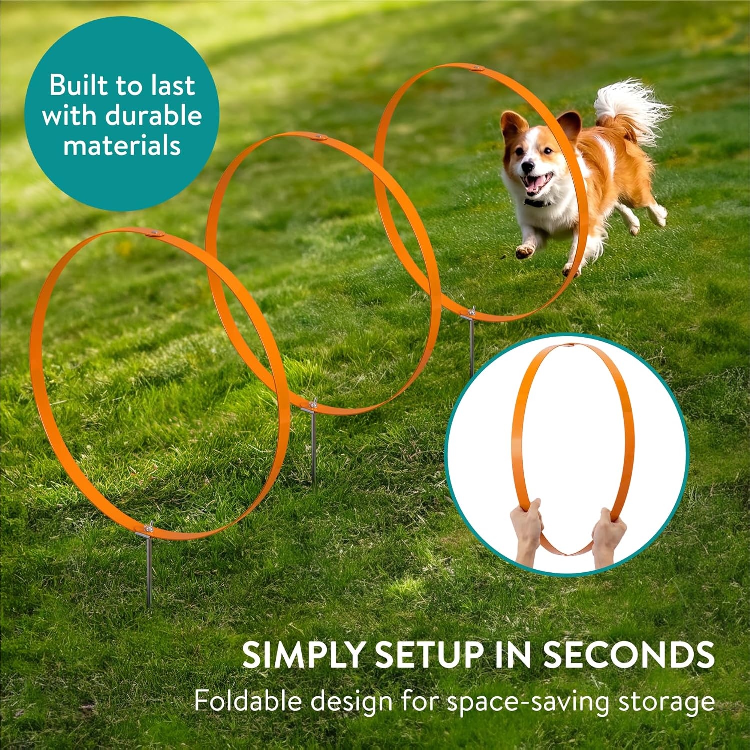 SPACE-SAVING DESIGN: The foldable design of these dog agility hoops allows for easy storage when not in use. Store the rings conveniently in a cupboard or garage and keep your space clutter-free.