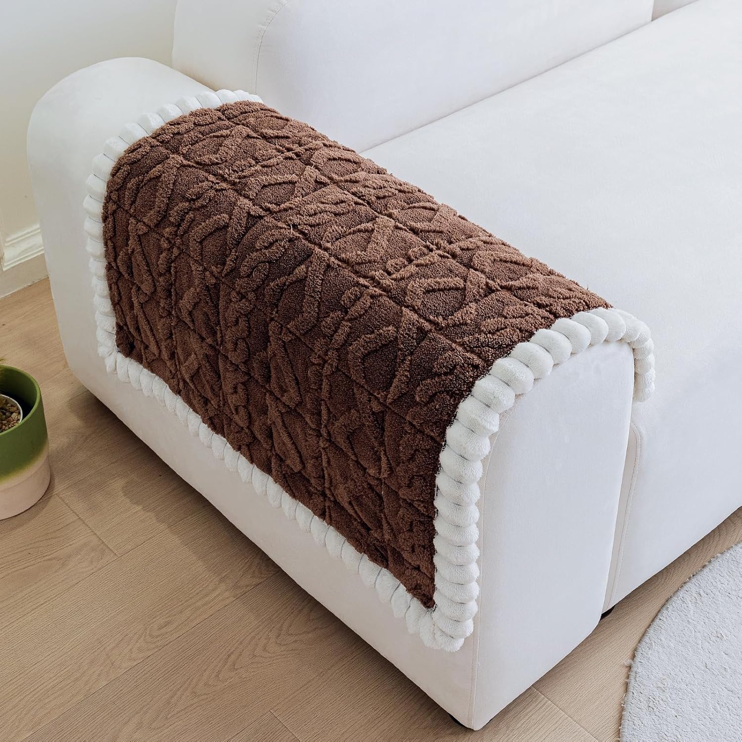 Non Slip Couch Arm Covers, Soft Recliner Backrest Cover Washable, Thick Fuzzy Armrest Covers for Sofa, Plush Armchair Arm Rest Slipcovers Couch Protector(1,Brown,27.6″x27.6″)