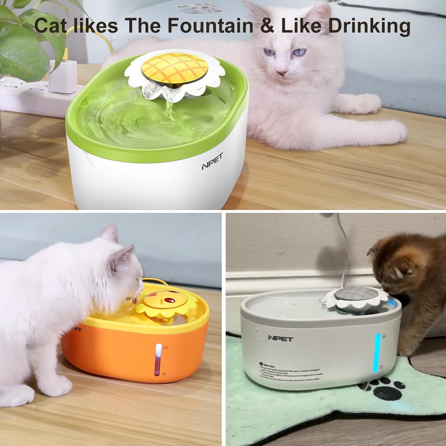 🌻【Sunflower Design】 Our adorable cat fountain features a delightful sunflower-themed faucet that entices your furry friends with its playful flow, while adding a touch of fun to your home decor. Its simple but premium esign and match your home decor, allowing you and your pets to enjoy the style one-of-a-kind water dispenser tailored to your beloved pets’ unique style! These chic desgin water fountains are great for small pets.
