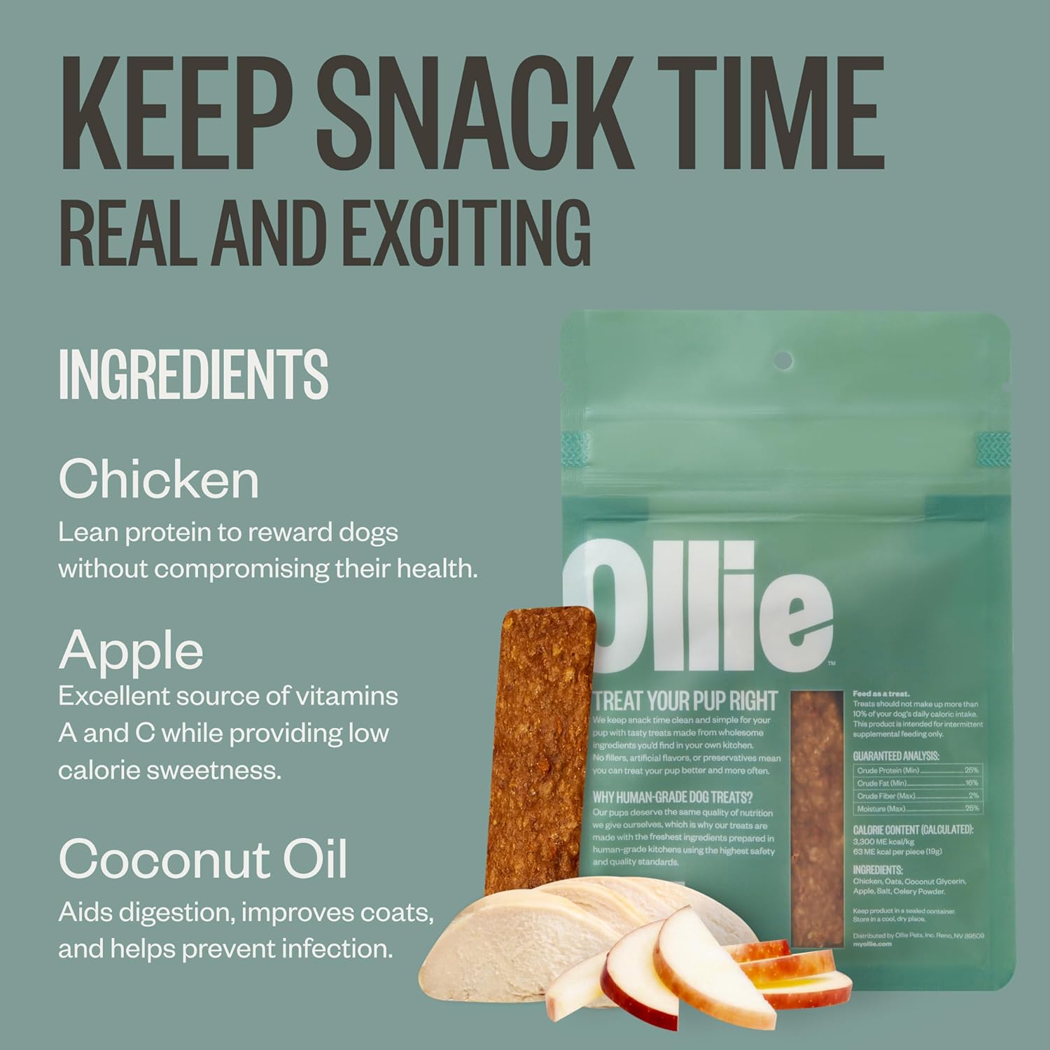 8 reviews for Ollie Chicken and Apple Jerky Dog Treats, 5 oz Pack of 3, All Natural, Healthy Snacks, Made with Real Meat, Human Grade, for Dogs
