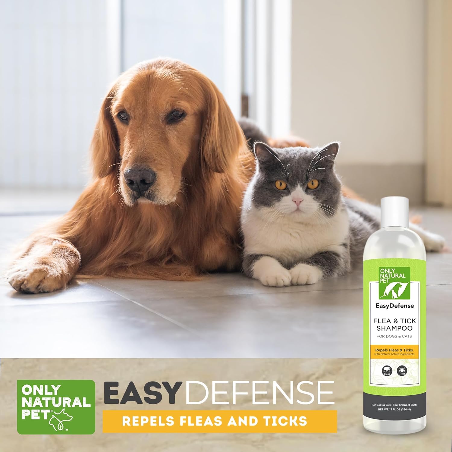 Only Natural Pet EasyDefense Shampoo is a natural flea and tick shampoo designed for dogs, cats, kittens, and puppies aged four months and older. Enriched with geraniol and peppermint oil, this gentle yet sufficient formula repels pests, soothes itchy skin, and refreshes your pet’s coat. It offers safe, everyday grooming and pest control for your furry companions.