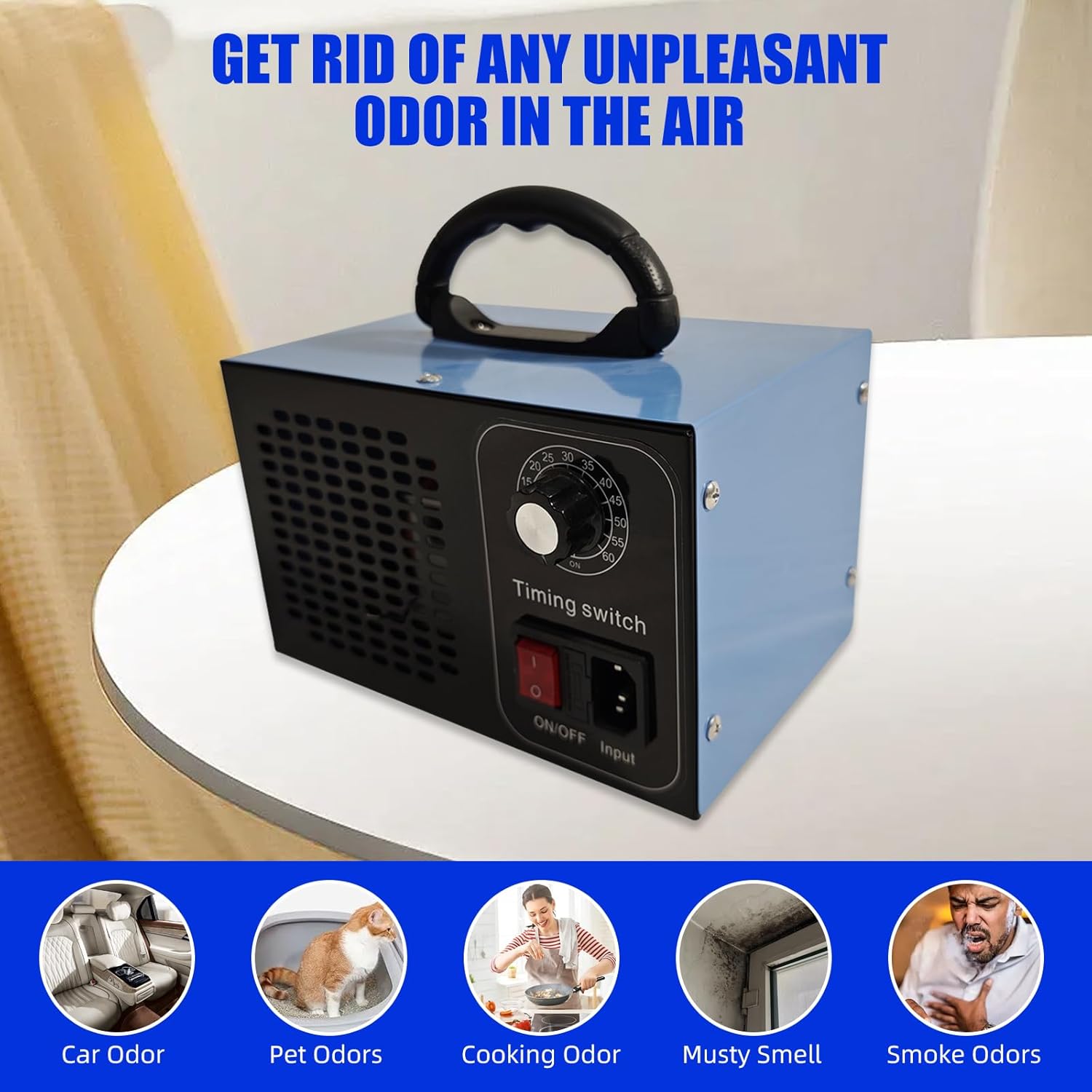 Instructions for Use: Ozone machine odor are only used in unmanned spaces (it will be more effective to remove the odor source before using the machine). When using, please keep the space closed and away from people, animals and plants. And after the treatment is completed, please open the doors and windows for ventilation for 30-60 minutes to ensure that the ozone is fully decomposed before entering.
