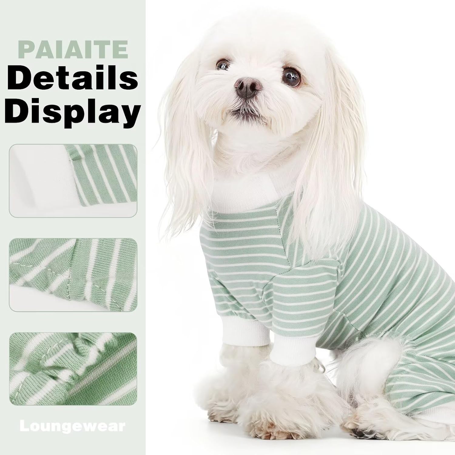 8 reviews for Paiaite Green Striped Dog Pajamas: 4-Legged Cotton Stretchable Jumpsuit Pjs – Lightweight Cozy Puppy Onesie Clothes, Comfortable Pet Sleepwear for Hair Shedding Coverage S