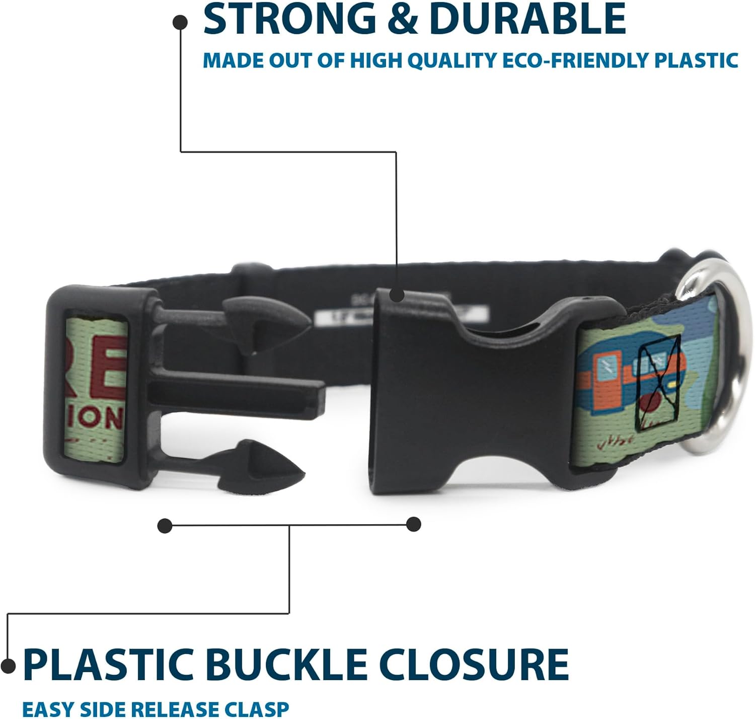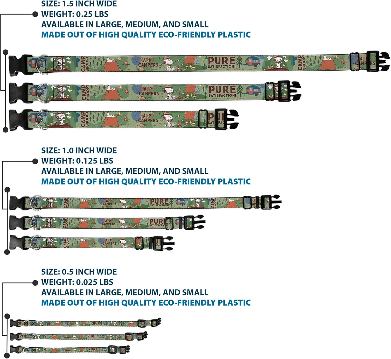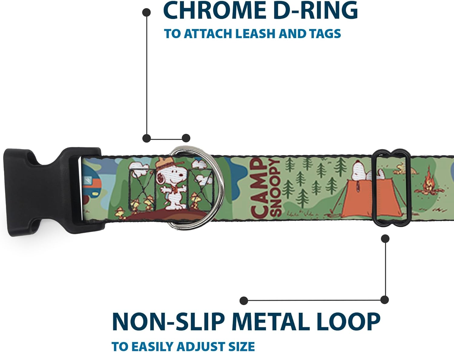 Peanuts Worldwide LLC Pet Collar, Dog Collar Plastic Buckle, Peanuts Happy Camper Beagle Scouts Scenes, 11 to 16.5 Inches 1.0 Inch Wide
