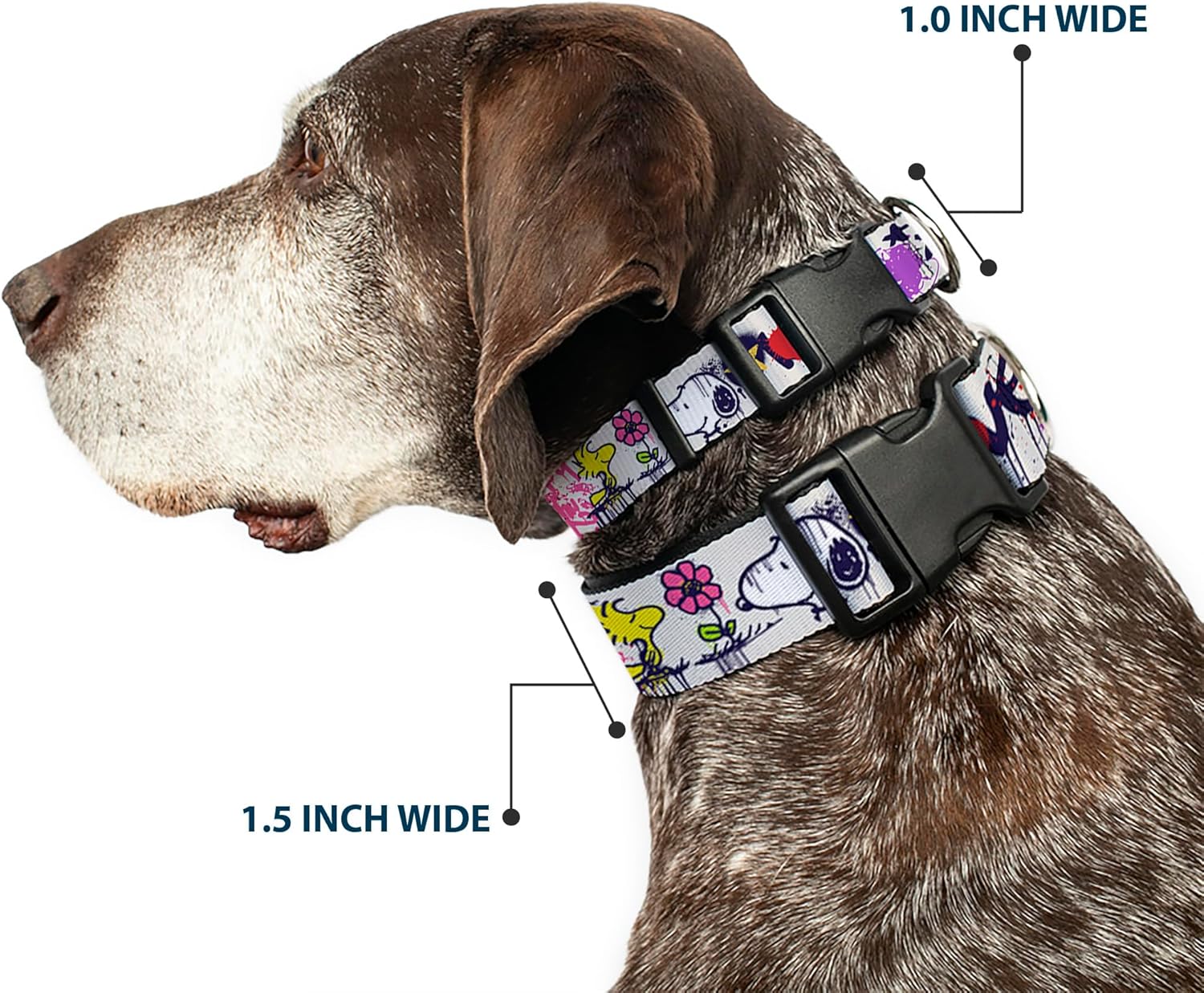 Peanuts Worldwide LLC Pet Collar, Dog Collar Plastic Buckle, Peanuts Snoopy and Woodstock Graffiti Collage Multi Color, 15 to 24 Inches 1.0 Inch Wide