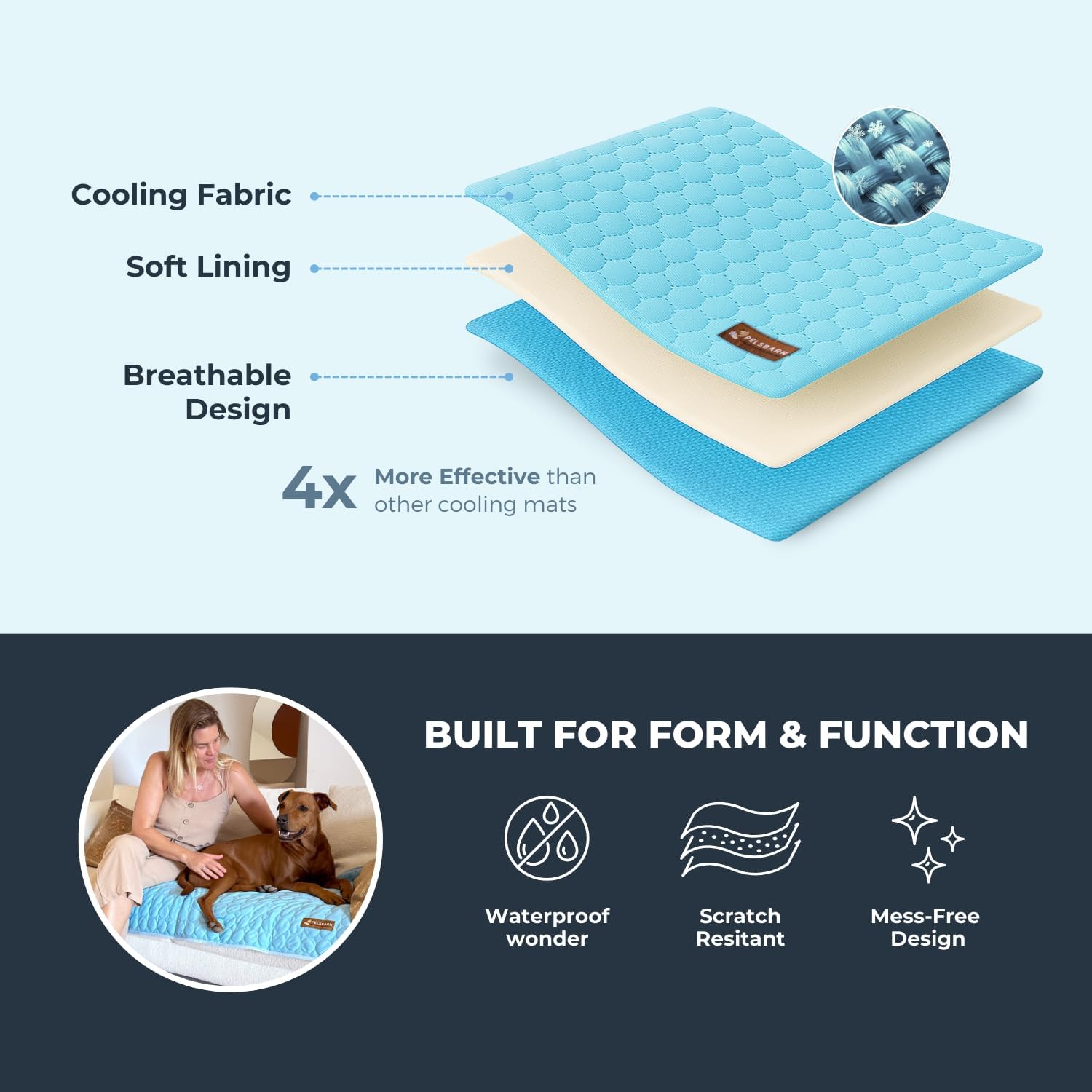 Pelsbarn Dog Cooling Mat- Ice Silk Summer Comfort, Self Cooling, Non-Slip Dog Pad, Durable & Washable, Mat for Large Dogs 25″” x 37″”, Support Shelter Dogs with Every Purchase (Blue)