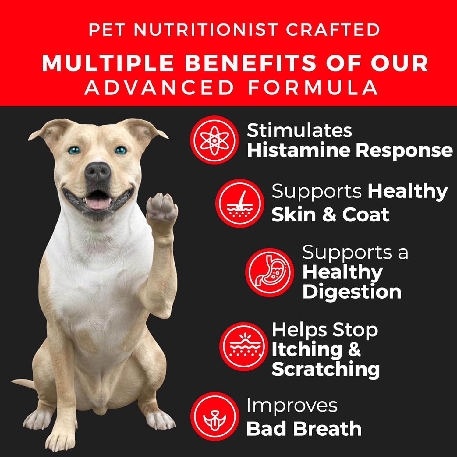 FAST-ACTING ALLERGY RELIEF FOR DOGS: Help support your dog comfort from itching, scratching, and sneezing. These advanced dog itch relief chews are formulated to help ease seasonal, environmental, and household irritants. With a powerful blend of 18 probiotic strains, omega oils, and calming botanicals like licorice root and valerian, your pup can enjoy better skin and paw comfort and improved daily well-being