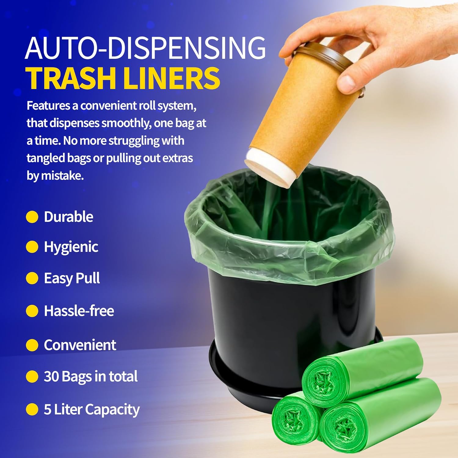 VERSATILE AND STRONG – Use these green trash bags as bathroom garbage bags, bags for your kitchen countertop bin, or paper trash can liners for your office. Theyāre lightweight yet durable for a variety of household uses.