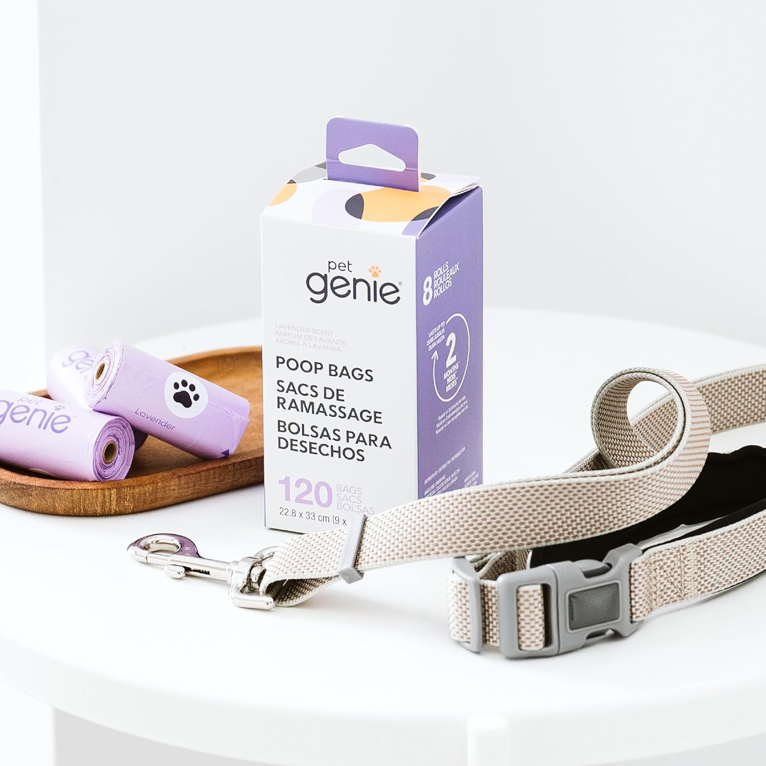 Pet Genie, Dog Poop Bags Rolls Scented, Extra Strong & Leak-Proof for Dogs, Lavender Scented, Easy Tear Pet Waste Bags, Made from 65% Recycled Plastic, 8 Rolls (120 Count)