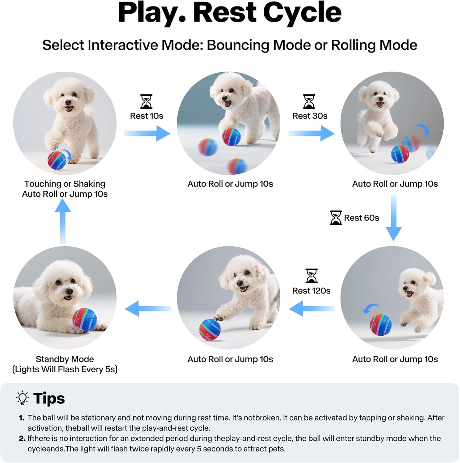 Smart Sensors: This toy is equipped with smart sensors,when your pet touches or bites the ball,the built-in vibration sensor activates the toy,providing 10 seconds of automatic movement,rotation,or bouncing.This feature is perfect for keeping dogs engaged,especially for busy pet owners who want to provide stimulation even when they can’t be around