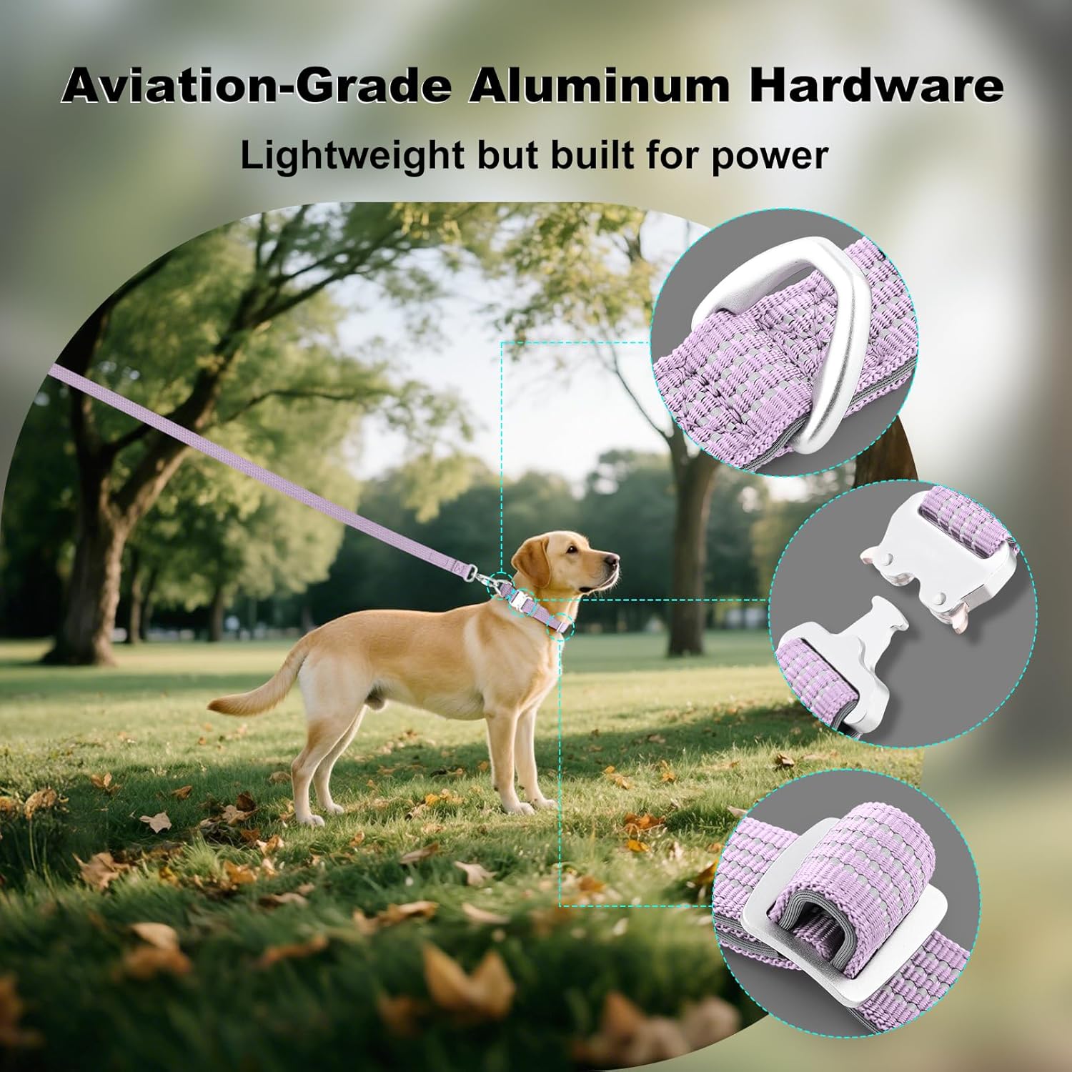 Built with Aviation-Grade Aluminum – Lightweight and Ultra Strong. Featuring a buckle and D-ring crafted from aviation aluminum, this dog collar delivers exceptional strength without the bulk. Ideal for everything from playful puppies to powerful pullers