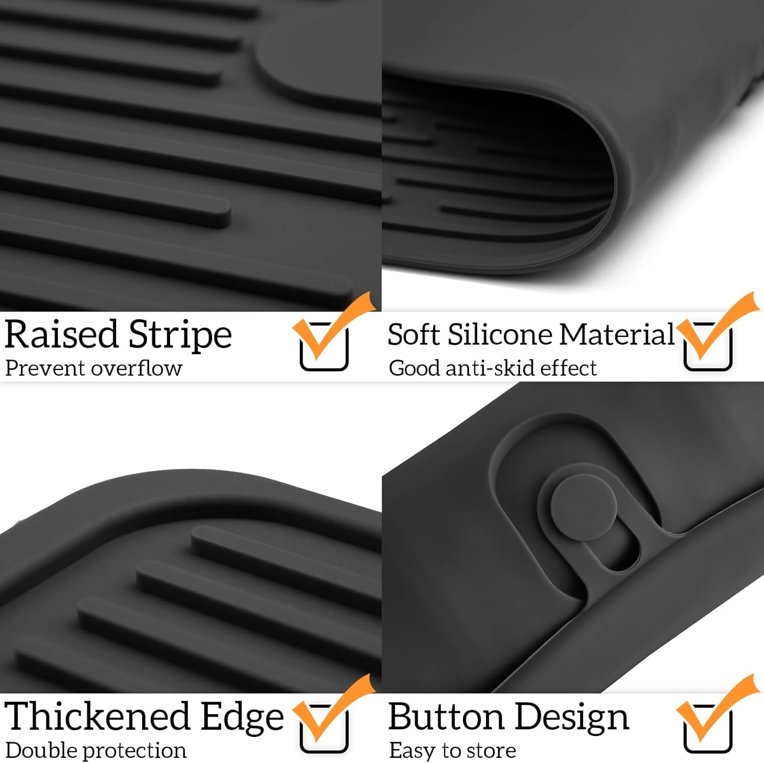 [100% Waterproof and non-slip] The anti-overflow design on the edge can effectively prevent food and water on the placemat from overflowing, prevent pets from eating food that has been polluted the floor. Anti-slip material keeps the bowls in place.