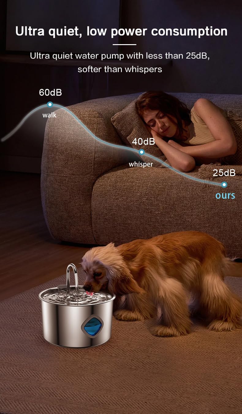 Premium Materials and Design: Crafted from high-quality 304 stainless steel, the water fountain ensures a safe and refreshing drinking experience while effectively preventing chin spots. Its cordless design provides flexibility and simplifies placement, making it suitable for any environment.