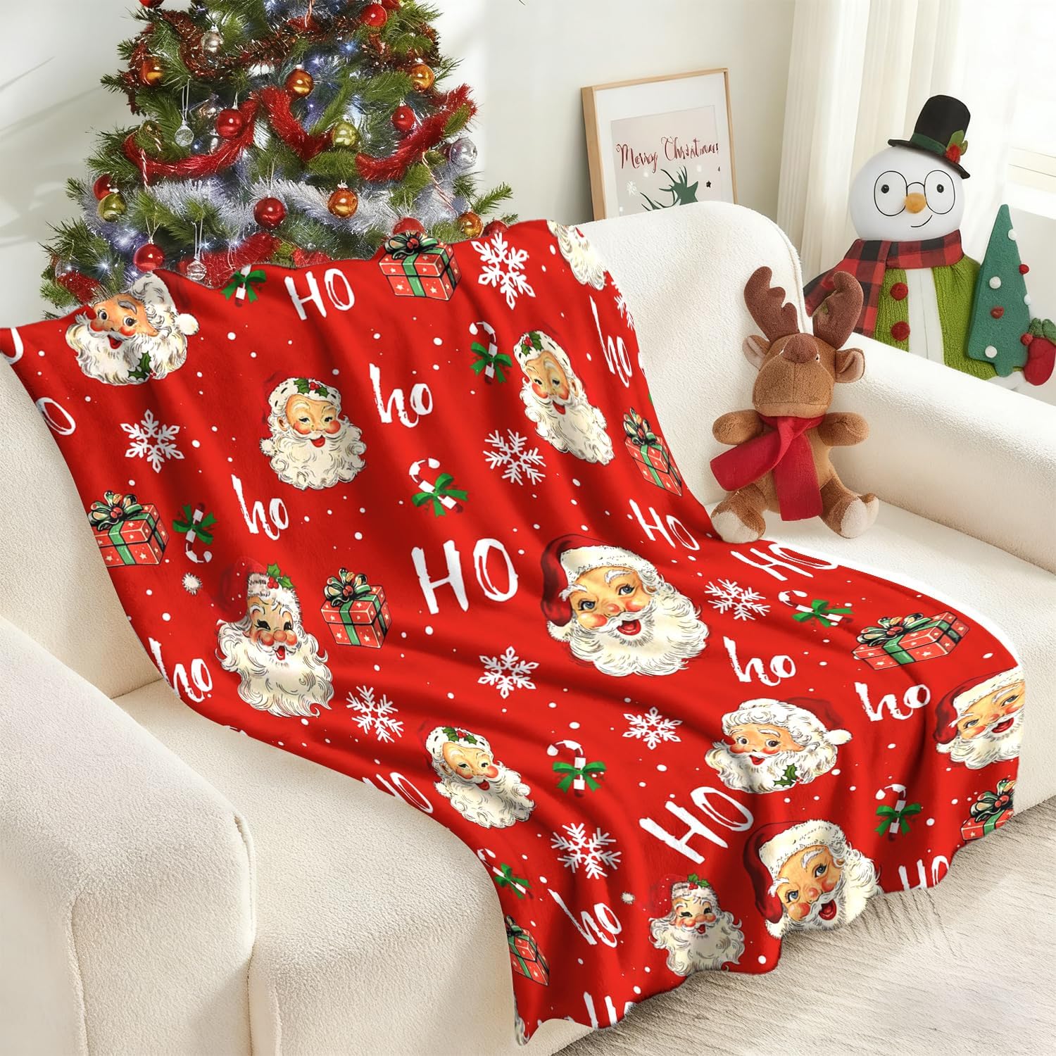 Red Christmas Throw Blanket, Santa Claus Ho Ho Fuzzy Blanket, Winter Snowflakes Christmas Holiday Soft Cozy Flannel Blanket for Bed Couch Sofa, 50×60 Inches