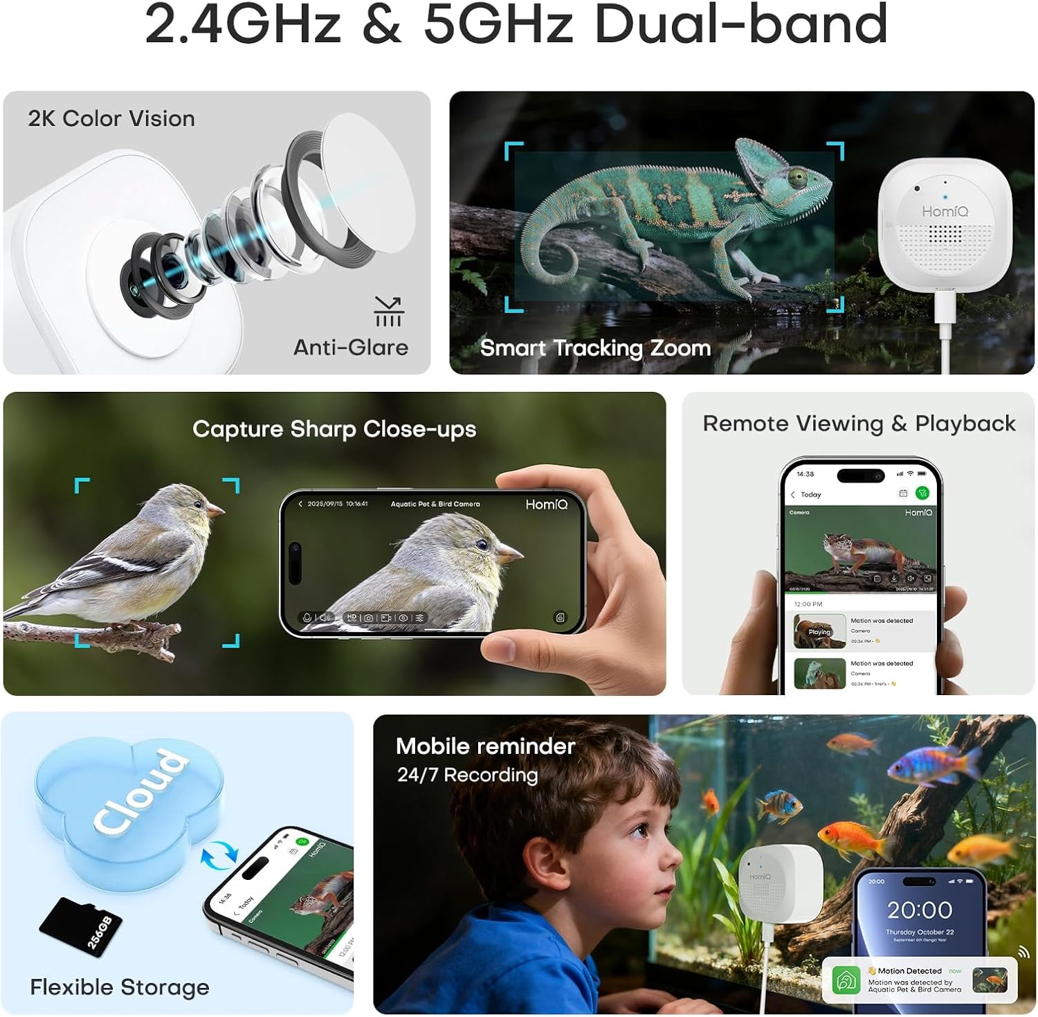 Reptile 3MP Terrarium Monitoring Camera Close-Ups Details, 2.4G&5Ghz WiFi AI Color Starlight Vision for Aquarium Pets, Anti-Glare& NO Reflect with 24/7 Events Recording in Easy Magnetic Install