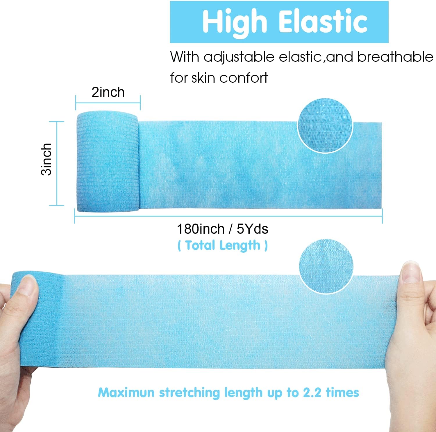 10 reviews for Self Adherent Cohesive Bandage Latex 3″ x5 Yards First Aid Bandages Stretch Sport Athletic Wrap Vet Tape for Wrist Ankle Sprain and Swelling,Light Blue(12 Rolls)