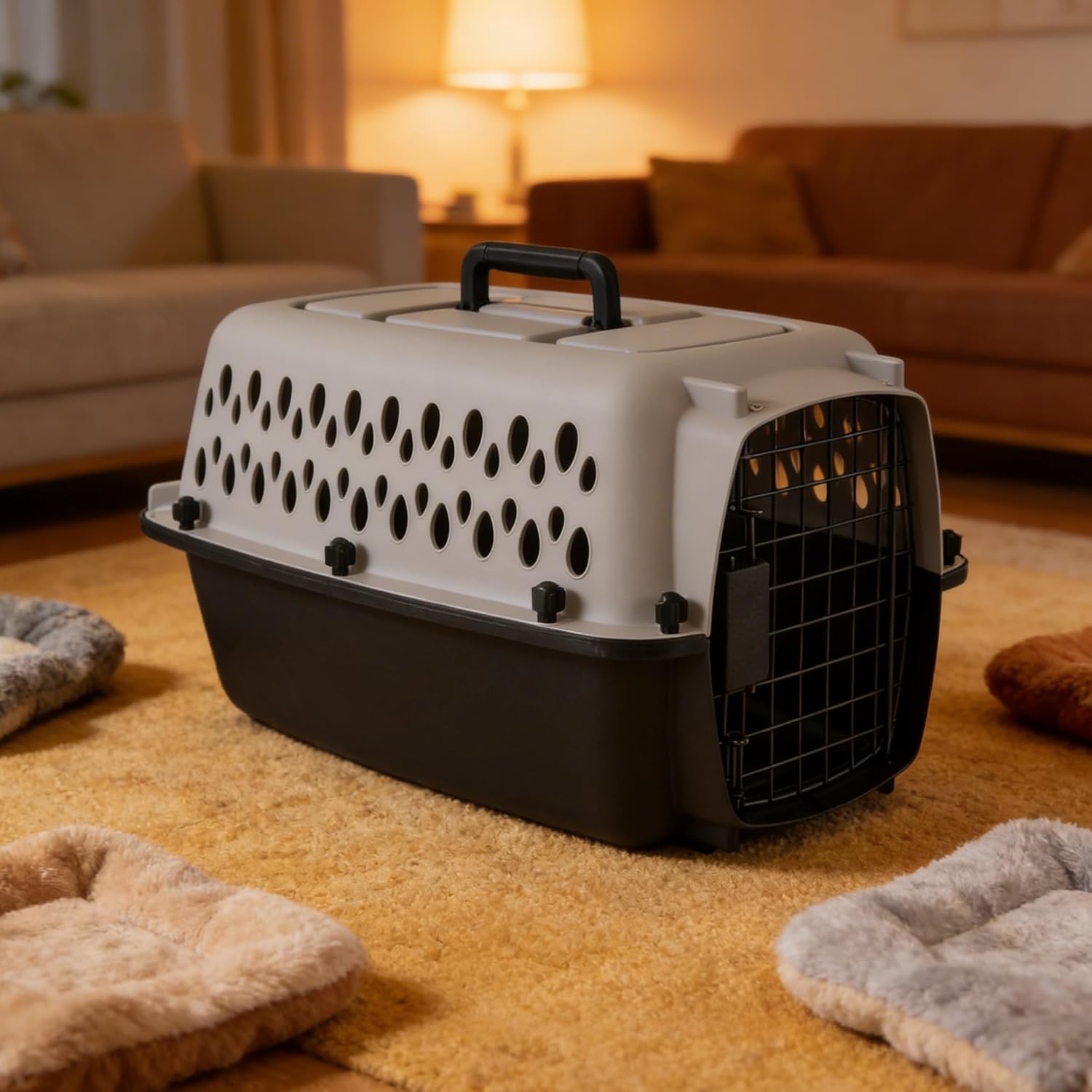 This small plastic pet crate is specially designed for pets up to 10 lbs. Featuring a ventilated design, it keeps air circulating well to keep your pet comfortable. Equipped with a secure lock, it prevents accidental escapes, and the lightweight build makes it easy to carry. Perfect for daily indoor use, car rides and short outdoor trips, a practical choice for small pet owners.