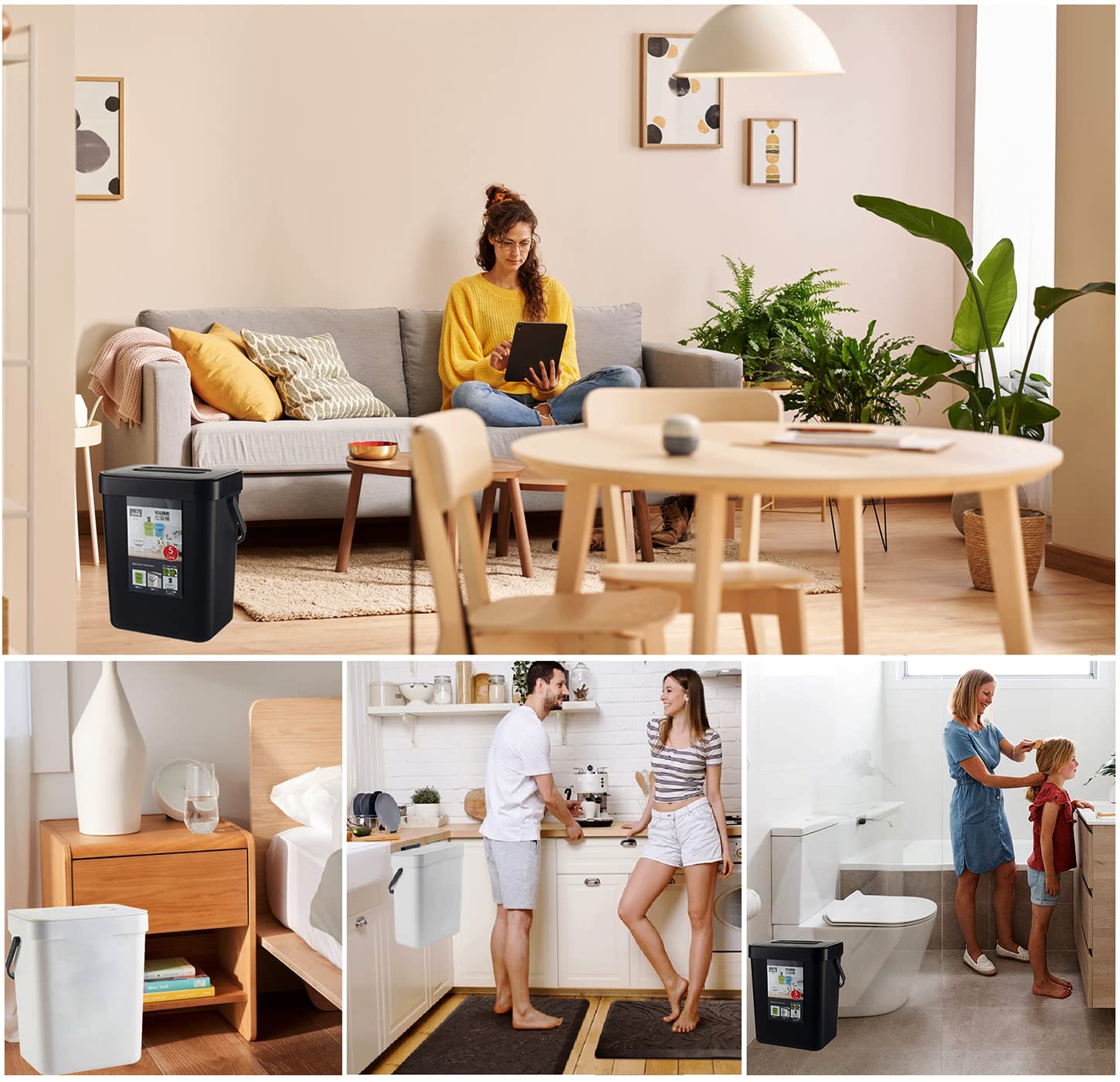 ćHigh Qualityć: kitchen trash can with lid is made up with high quality plastic. The sturdy handle makes it easy to carry the filled bin. Perfect for everyday counter-top use.Indoor compost bin with lid designed specifically as a hidden non smelling fruit fly free. Super easy access for load and unload.