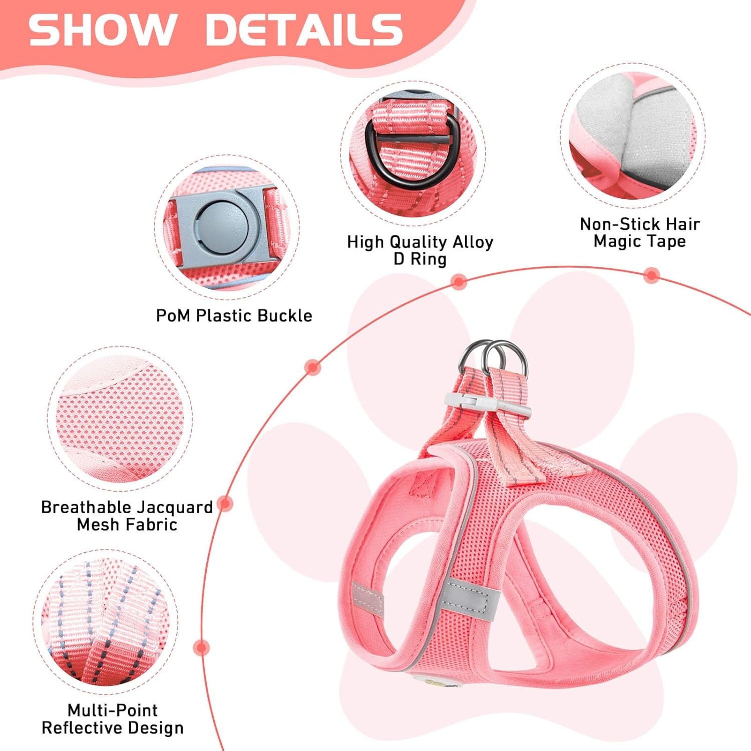 Soft Mesh Dog Harness and Leash Set, No Pull Puppy Harness and Leash Set, Reflective Step in Harness for Small Medium Dogs, Easy Walk Escape Proof Vest Harnesses (Pink, XXS)