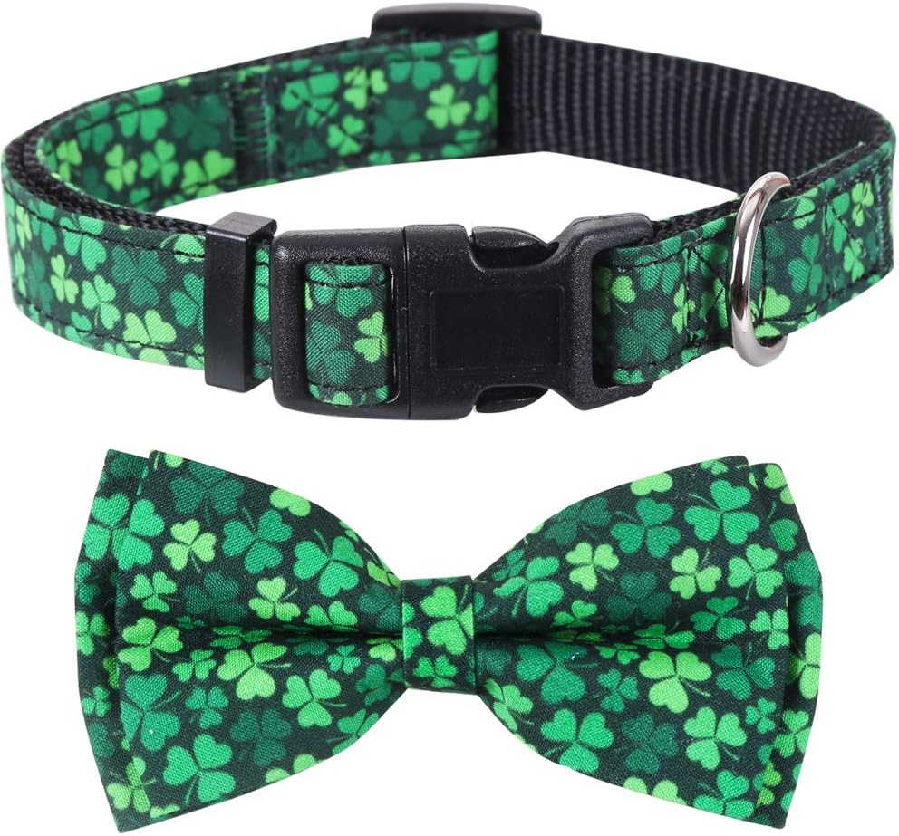 St.Patrick’s Day Dog Collar with Removable Cute Bow Tie Adjustable Pet Collars Small