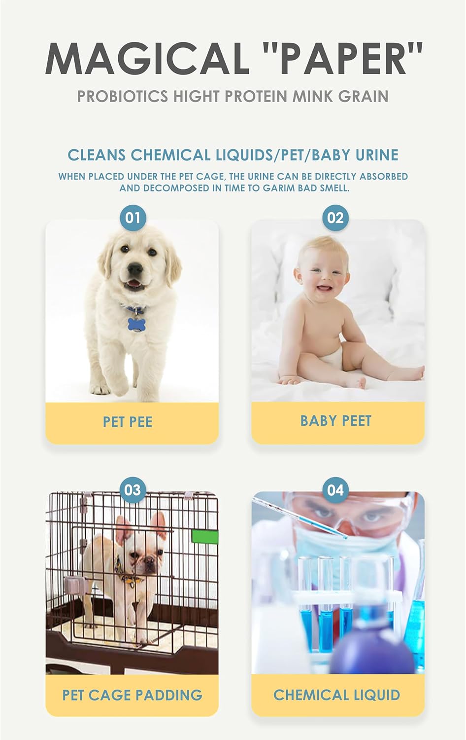 SUPER ATTRACTIVE & MORE ABSORBENT: Pet urine absorbent paper is made from non-woven polymer material, absorbs extremely quickly and easily, is convenient, thick and not easy to break, toilet pad for dogs Is more absorbent than most puppy potty pads on the market