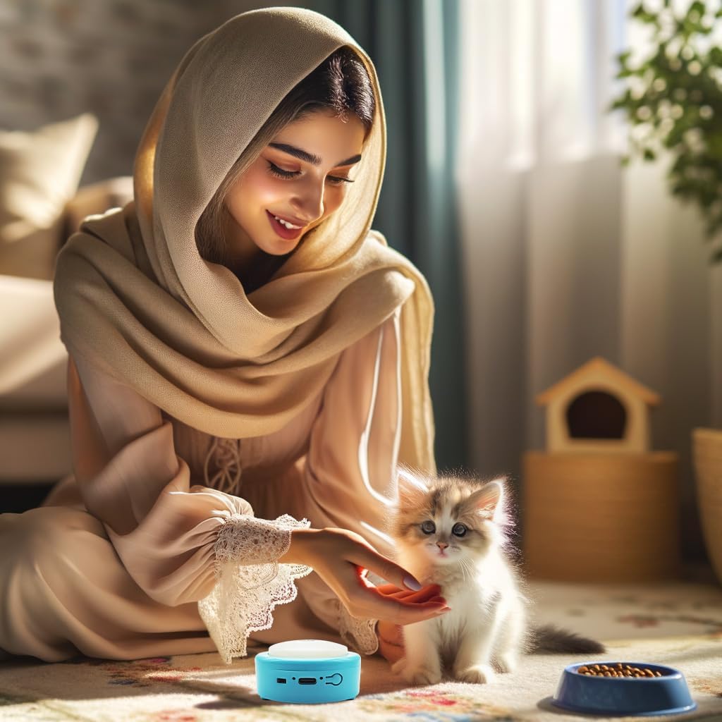 The talking button’s pressure has been adjusted to 220 grams (about half a pound), allowing even young pets to easily press the button and play a pre-recorded voice.