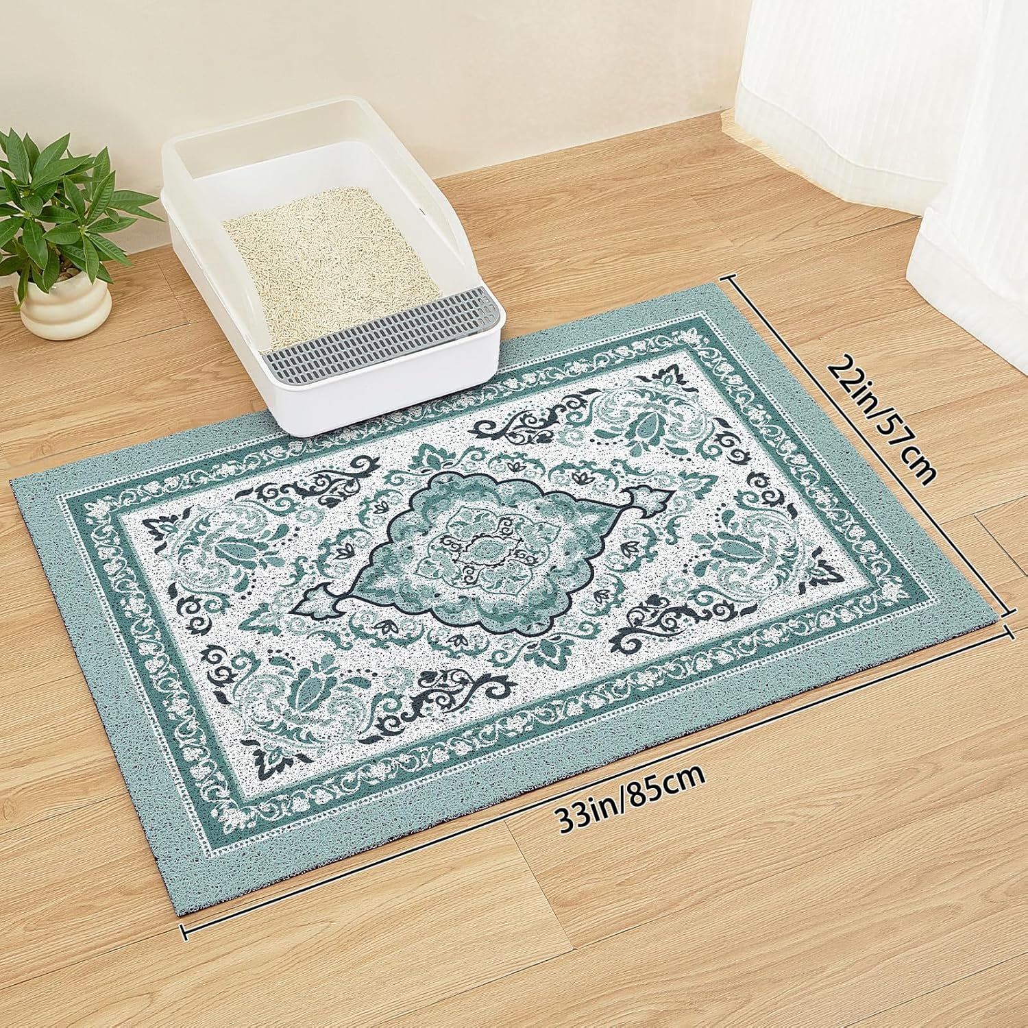 Unicorn Catcher Cat Litter Mat 33″ x 22″ Non-Slip Litter Box Mat Washable Litter Catcher Mat for Litter Box Indoor Food Mat Supplies Essentials, Dark Cyan
