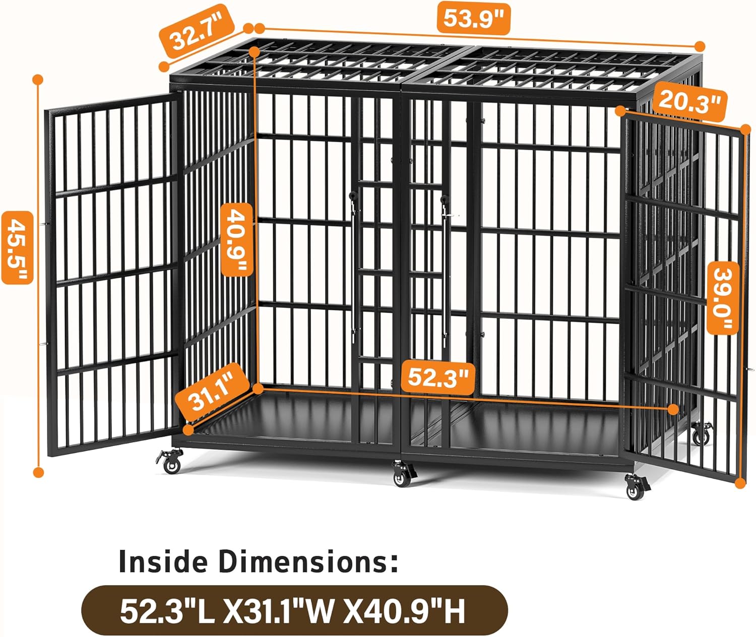 【Choose The Right Size】: The interior dimension of this kennel is 52.3″L × 31.1″ W × 40.9″H. Ideal for most medium to large dogs. Before purchasing, please measure your puppy’s length while standing and height while sitting. To ensure that your dog can rest freely and turn around easily in the crate, we recommend adding 2–4 inches to these measurements.