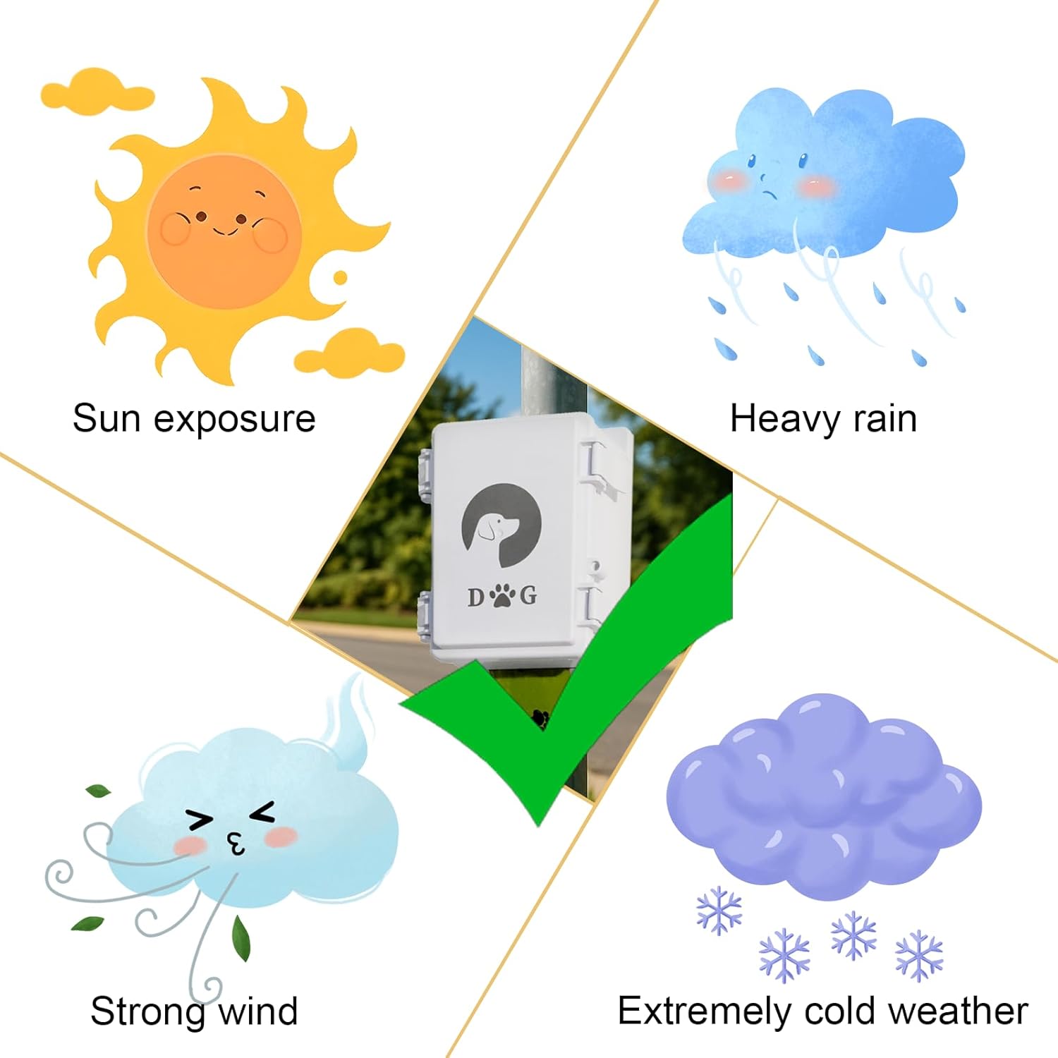 【Waterproof & All-Weather Tough】 – Made from durable ABS plastic,metal liner, the built-in sealing strip prevents water from entering. This outdoor poop bag dispenser won’t crack in rain, snow, or sun. Perfect for patios, lawns, yards, parks, garages, or pet waste station.