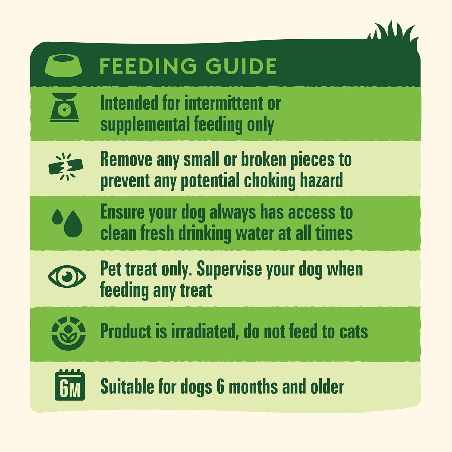 Delicious and nutritious, but not recommended for dogs w/ sensitive or missing teeth.