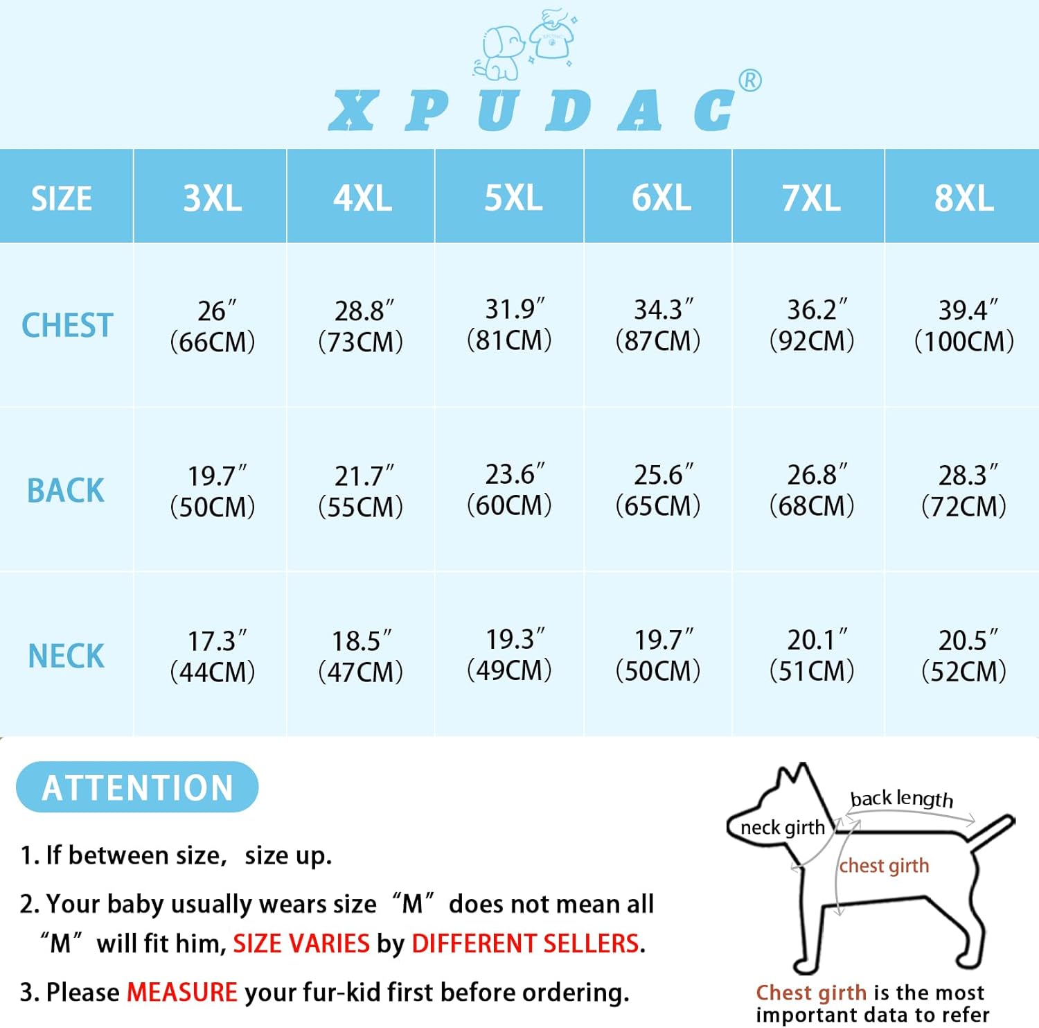 Size Note: Please measure your dog’s chest girth, back length and neck girth, and refer to the size chart to choose the appropriate size, priority refer to the chest girth. Size: 7X-Large(Chest-36.2″ Back-26.8″ Neck-20.1″)