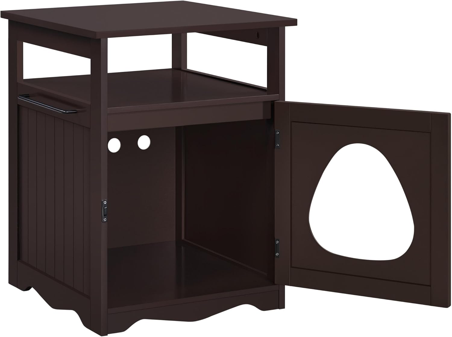 8 reviews for Yaheetech Cat Litter Box Enclosure, Hidden Litter Box Furniture with Open Shelf, Indoor Cat Washroom, Storage Cabinet Pet Crate, Side End Table, Wooden Pet House Espresso